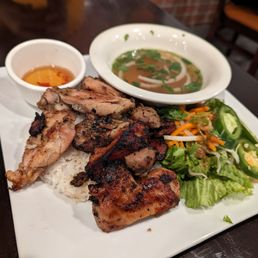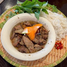 This place is a Northern Vietnamese style cuisine restaurant. It is fairly spacious but the smaller tables seemed more squished and I felt too close to the next table. Service was good, prices were reasonable and food came out quick. Overall, food was pretty good! For starters, the Nem Cua Bể (crabmeat spring rolls) were tasty and the spring rolls were full of meat! Would recommend the Bún Chả Hà Nội (grilled pork and meatballs with vermicelli) and Bánh Cuốn Chả Lụa (steamed rice rolls with pork)--both decent portions and delicious! Their fish sauce is on the bland side, I would have liked it more saltier. The Bánh Mì Bò Né (steak with bread) was just okay--the steak flavoring was good but the meat was too overcooked so it was tough and dry, and the patê was very salty. I would have to come back to try their other dishes!